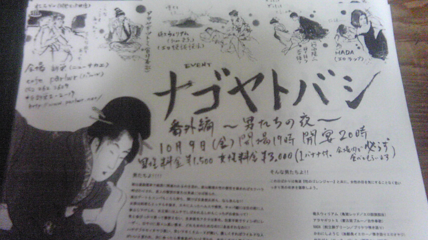 以上、性のゴレンジャーが女性の目を気にすることなく思いっきり男の世界を謳歌しよう、というイベントです。