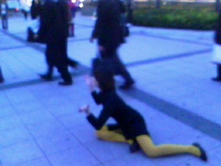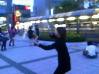 約束の時間、7時ぴったりに“まんまん"さんは現れた。そして、私にグミを差し入れとしてくれた。そして、すぐに“まんまん"さんは独自のパフォーマンスを開始し出した。金山駅南口中央に立ち、神経を統一した後、奇声を発しながら遠くの方に走っていった。そして、また戻ってきて独自のダンスを披露し続けた。ものすごく大勢の人がそのパフォーマンスを目を点にして見ていた。会社帰りのサラリーマン、学生、老夫婦…そのパフォーマンスを見ていると、私達が普段、どれだけしがらみの中で殻をかぶって生活しているのかを痛感させられた。“まんまん"さんのその剥き出しのパフォーマンスは私達に強烈なメッセージを投げかけていた。本人は本能のままに衝動的にパフォーマンスをしているんだと思う。しかし、そこには人間が持っている純粋さの結晶があった。